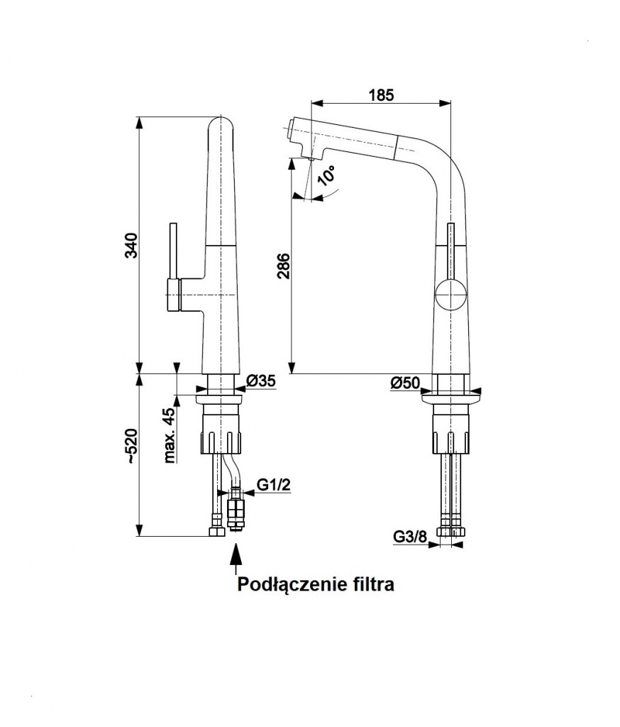 Drezovú batériu umiestnite podľa ľubovôle na drez alebo pracovnú dosku. Batéria je vyrobená z mosadze a opatrená keramickou kartušou Ø35, ktorú len tak neopotrebujete. Výška batérie je 34 cm a jej výhodou je otočný výtok, ktorý v praxi určite oceníte. Kuchynská batéria Mungo s filtráciou vody má vo vnútri dva samostatné kanály: pre filtrovanú a nefiltrovanú vodu, čo zaisťuje, že sa vzájomne nemieša. Filter nainštalovaný pod drezom čistí vodu, ktorá ním preteká, a privádza ju priamo do skla.