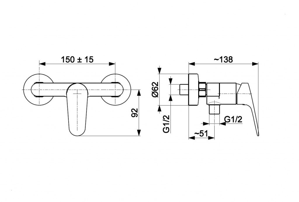 Nástenná sprchová batéria OTAVA od výrobcu KFA ARMATUR A s rozstupom 150 mm. Ide len o telo batérie, je potrebné objednať príslušenstvo, ako je ručná sprcha, nástenný držiak a hadica.