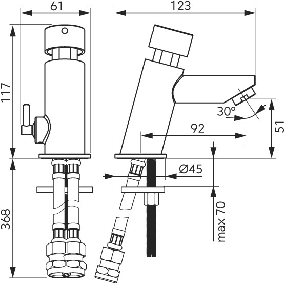 • odporúčaná teplota teplej vody: 65 °C • pripojenie k vodovodnej inštalácii: 2 x G 3/8 GW (flexibilné pripojenie)