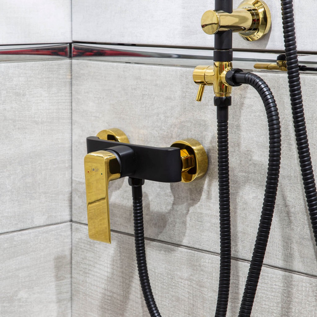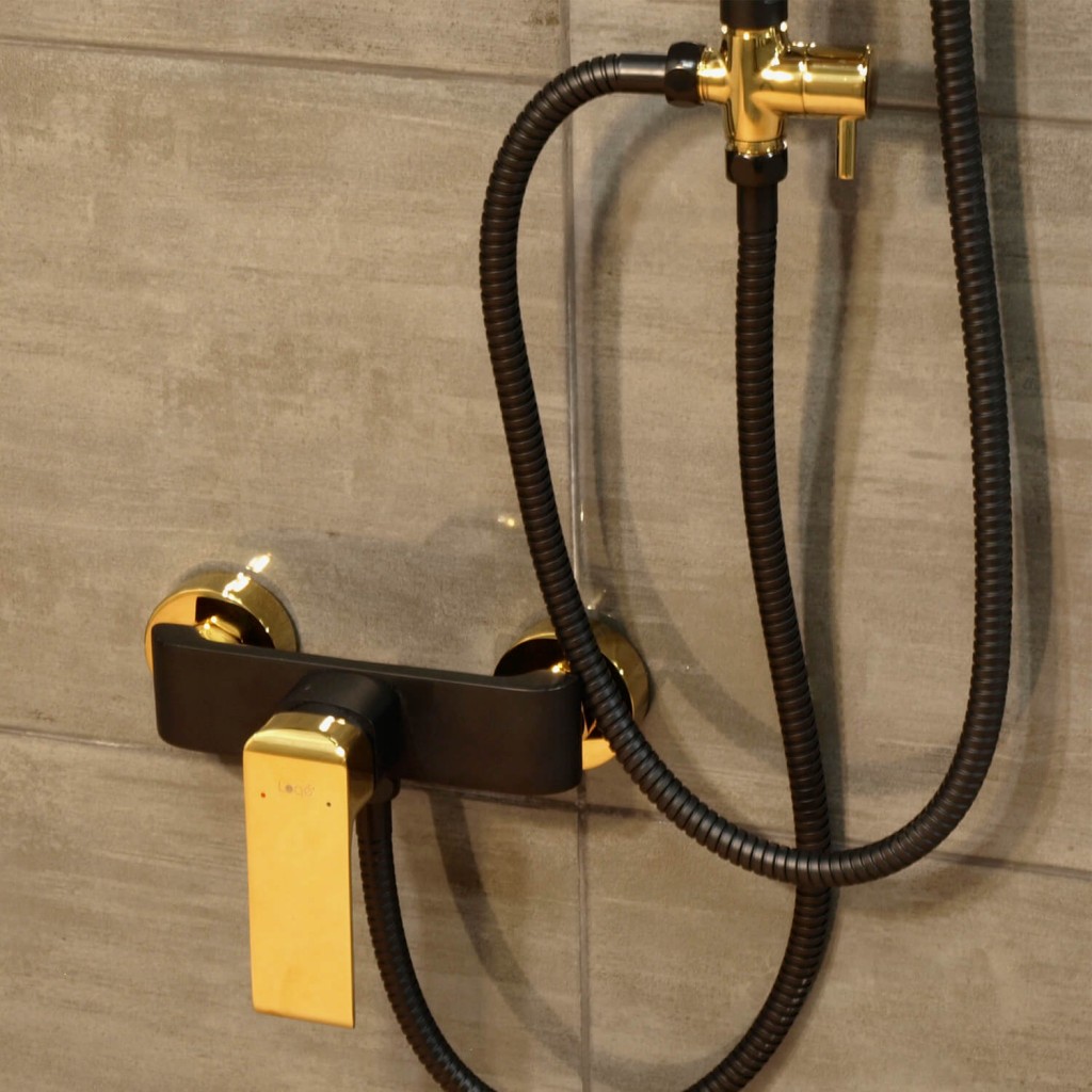 Sprchová batéria Maroco MA 34 od značky Loge zaujme na prvý pohľad svojim elegantným prevedením v kombinácii matnej čiernej a zlatej farby. Vďaka modernému a minimalistickému dizajnu sa skvele hodí do štýlových kúpeľní, kde vytvára výrazný vizuálny prvok.