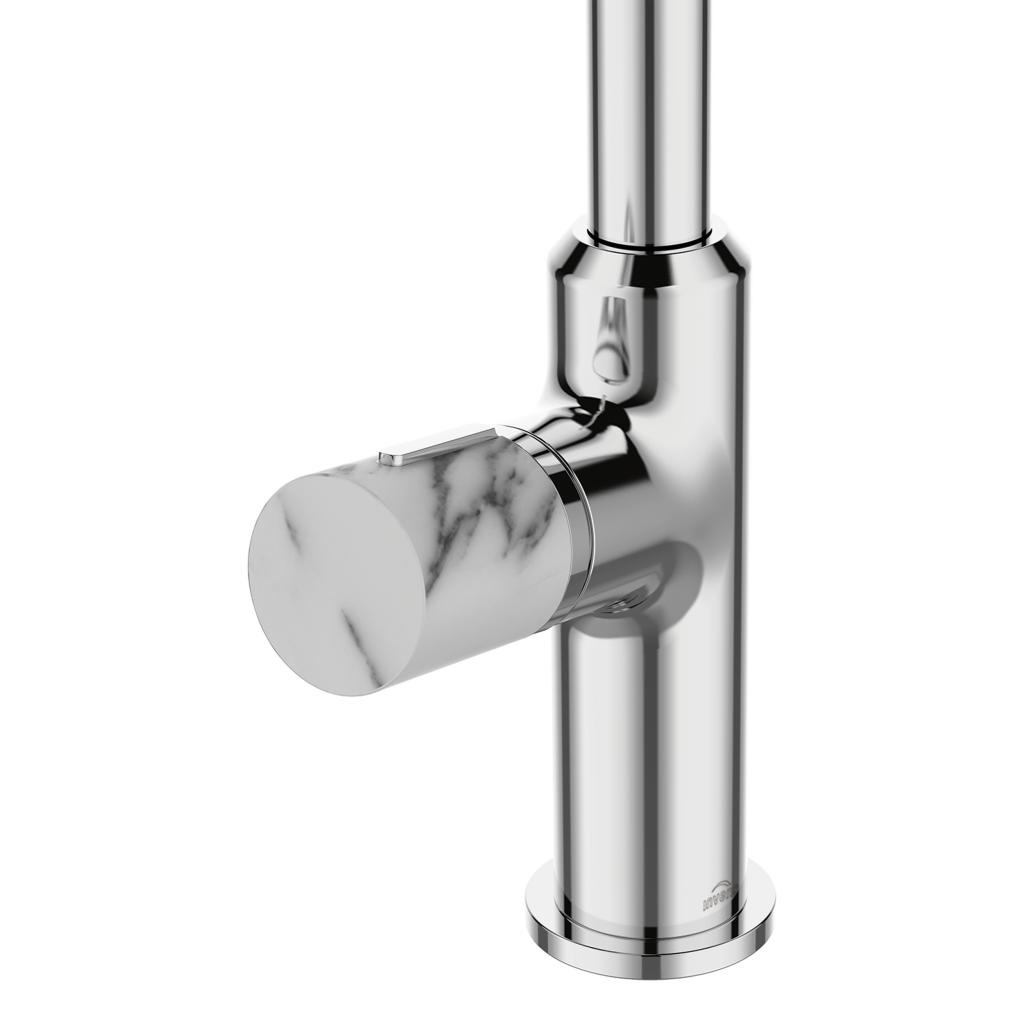Drezová batéria série Gabro Plus v klasickom chróme je vybavená rukoväťou s mramorovým efektom, ktorá vám umožní zariadiť všetky miestnosti v jednom konzistentnom štýle. Táto kombinácia vytvorí zaujímavý vizuálny efekt a umožní vám vniesť elegantný charakter do interiéru kuchyne. Otočný výtok použitý pri kuchynskej batérii zaisťuje jej plnú funkčnosť. Vďaka úspornému perlátoru je to perfektné riešenie pre ľudí, ktorým záleží na svete okolo nás.