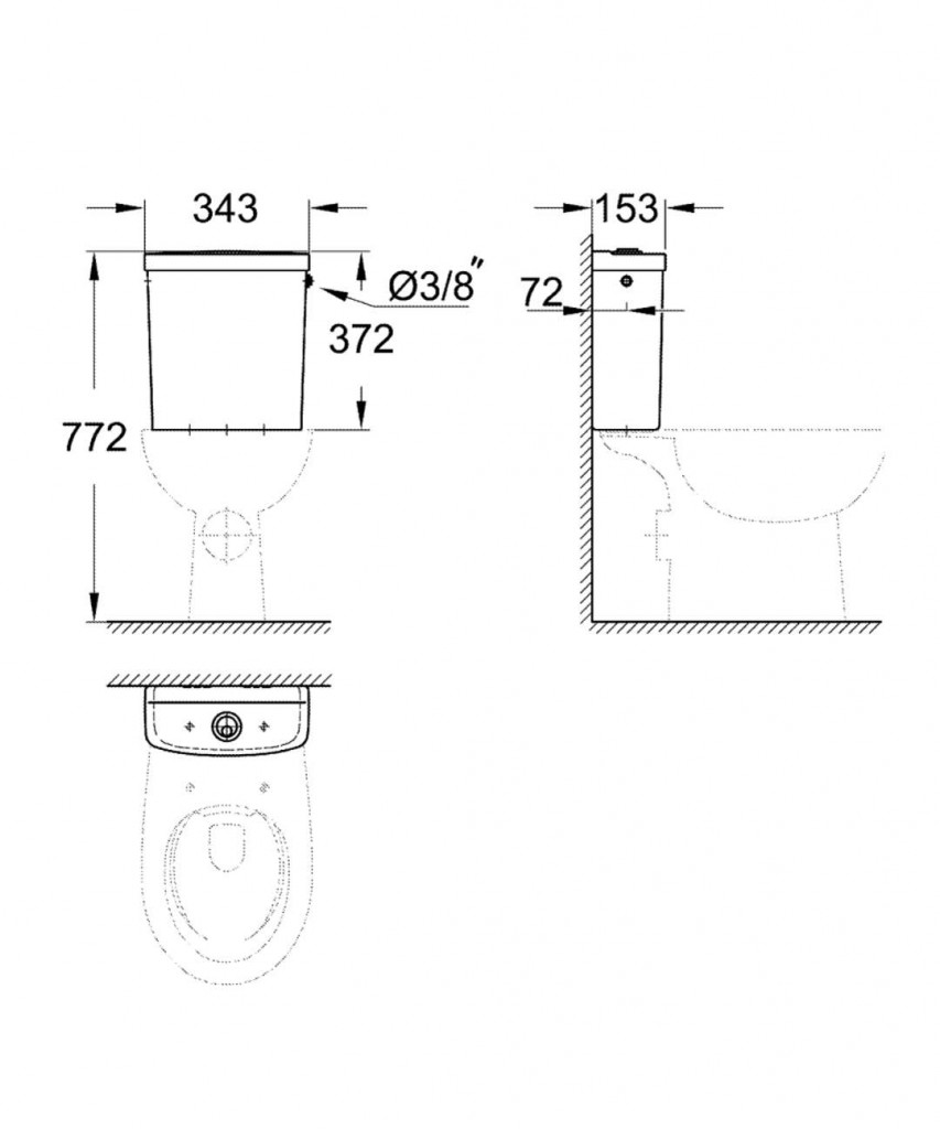 Ideálny v kombinácii so stojacim klozetom GROHE Bau Ceramic (39428000, 39429000).