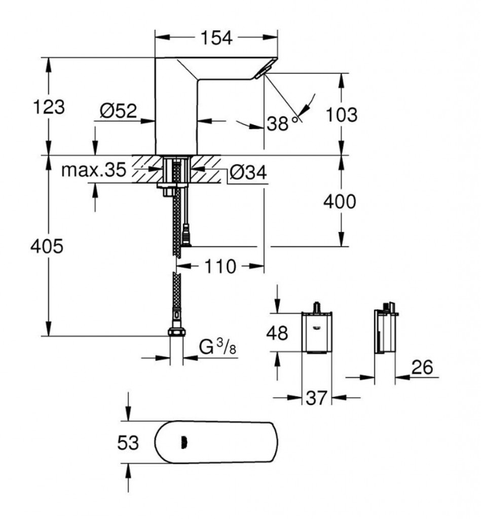 Umývadlová infračervená batéria bez zmiešavacie jednotky