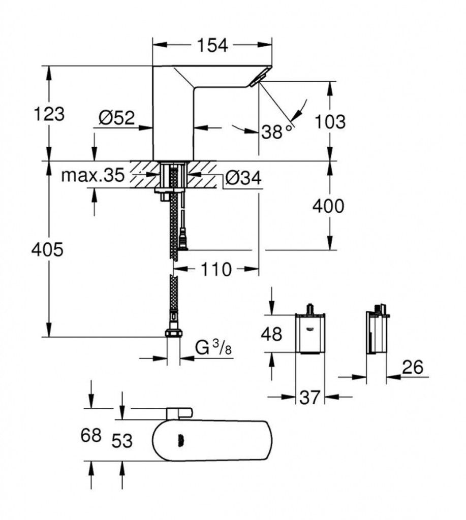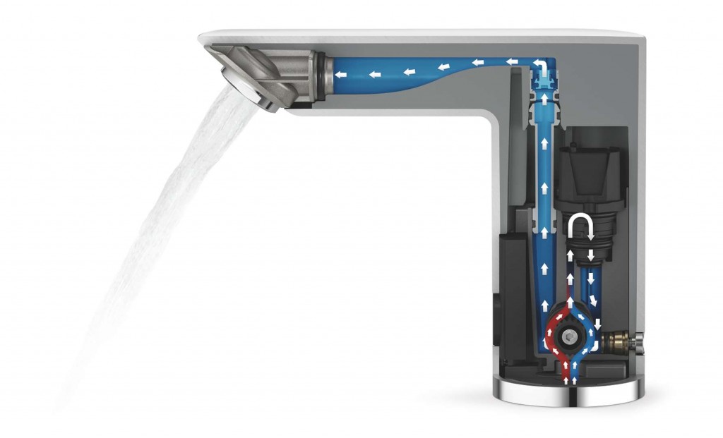 Umývadlová infračervená batéria so zmiešavacím zariadením a nastaviteľným obmedzovačom teploty