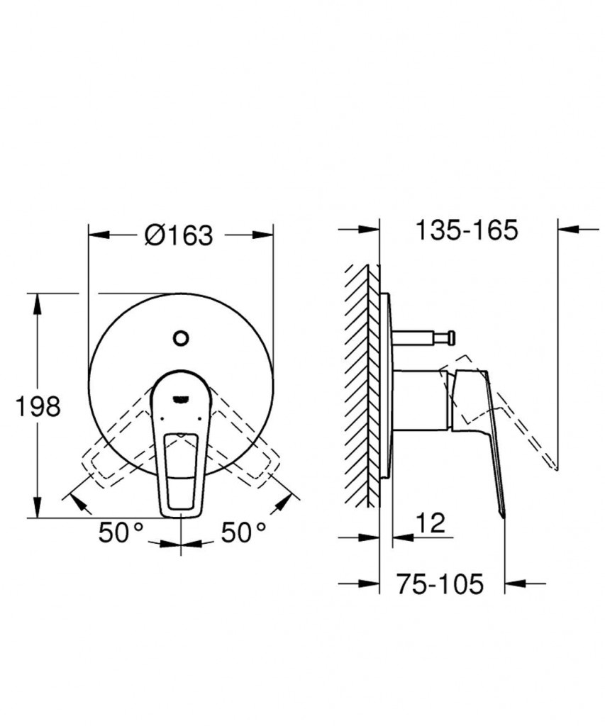 Pre kompletnú inštaláciu je nutné dokúpiť podomietkové montážne teleso.
