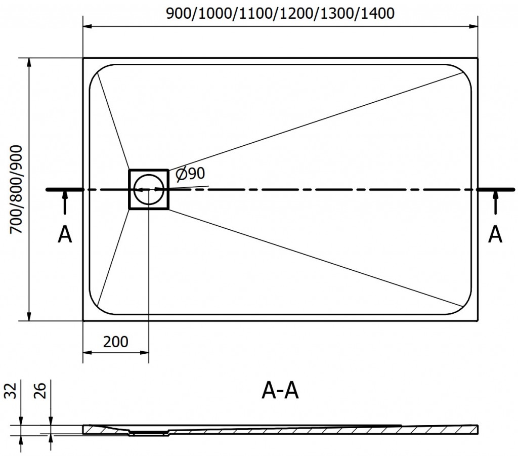 - priemer odtoku 90 mm