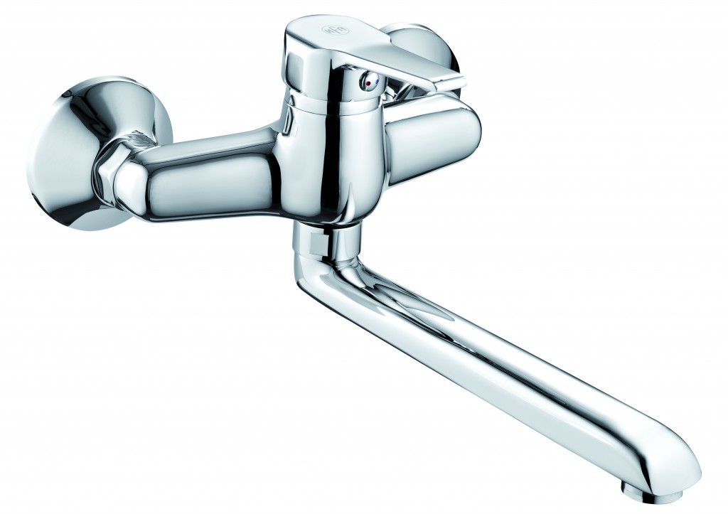 Nástenná drezová batéria BERYL od výrobcu KFA ARMATUR A s rozstupom 150 mm. Výhodou je otočné ramienko s dĺžkou 200 mm a perlátorom.