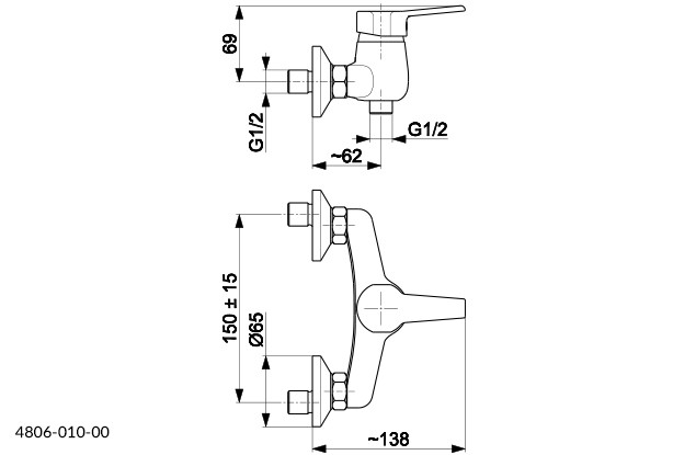 Nástenná sprchová batéria BERYL od výrobcu KFA ARMATUR A s rozstupom 150 mm bez príslušenstva.