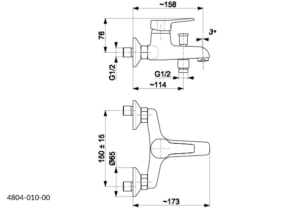 Nástenná vaňová batéria BERYL od výrobcu KFA ARMATUR A s rozstupom 150 mm.