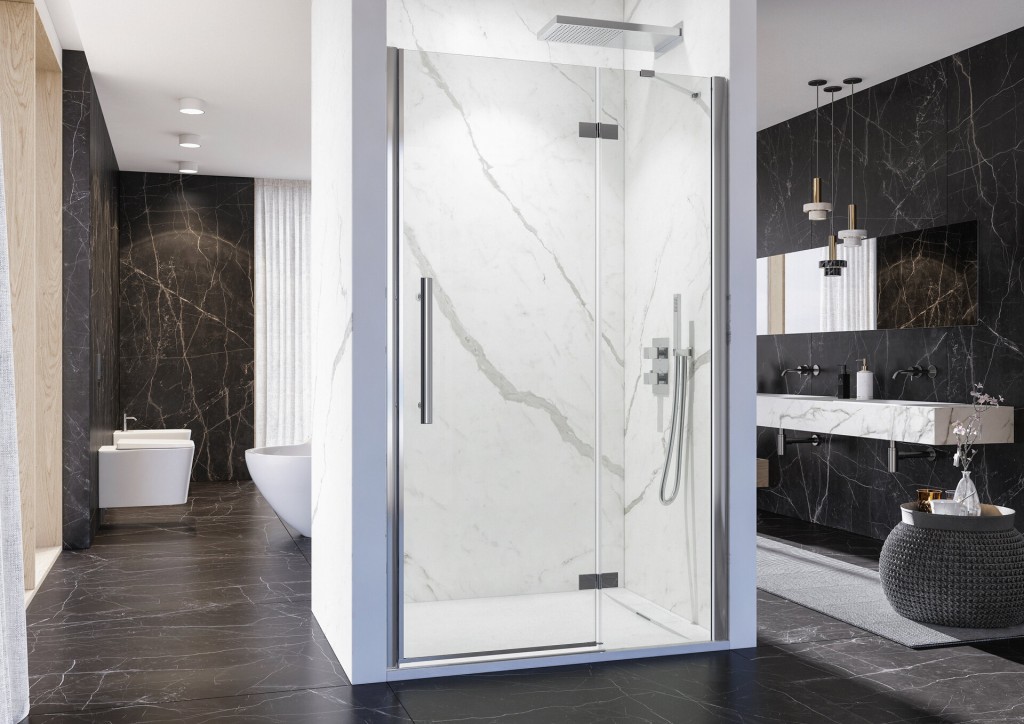 Sprchovací kút obsahuje tenkú spodnú lištu pod dvere.