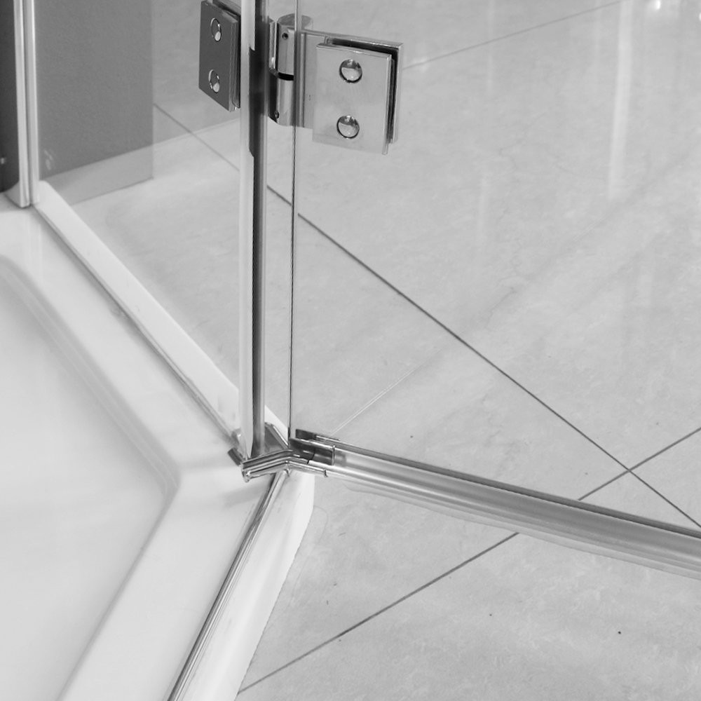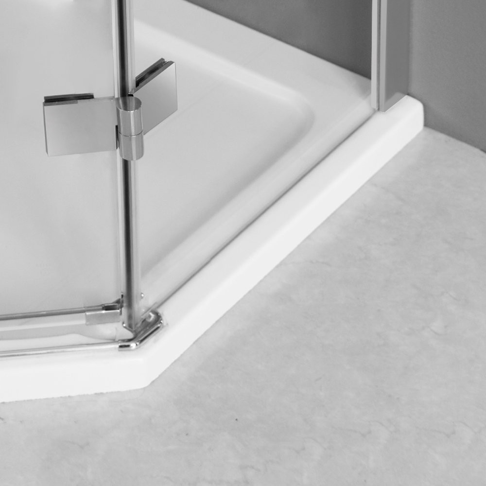 Sprchovací kút obsahuje tenkú spodnú lištu pod dvere.