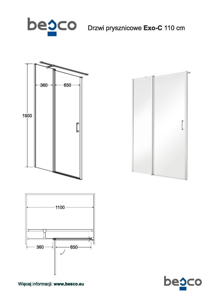 Bezrámové elegantné sprchové dvere EXO-C BLACK s možnosťou otvárania dverí do priestoru kúpeľne. Sprchové dvere EXO-C BLACK sú vyrobené z tvrdeného bezpečnostného skla s hrúbkou 6 mm, s povrchovou úpravou. Táto úprava uľahčuje čistenie a minimalizuje ukladanie vodného kameňa. Dvere možno doplniť bočným panelom, vďaka čomu možno ľahko vytvoriť sprchovací kút pre Vašu kúpeľňu.