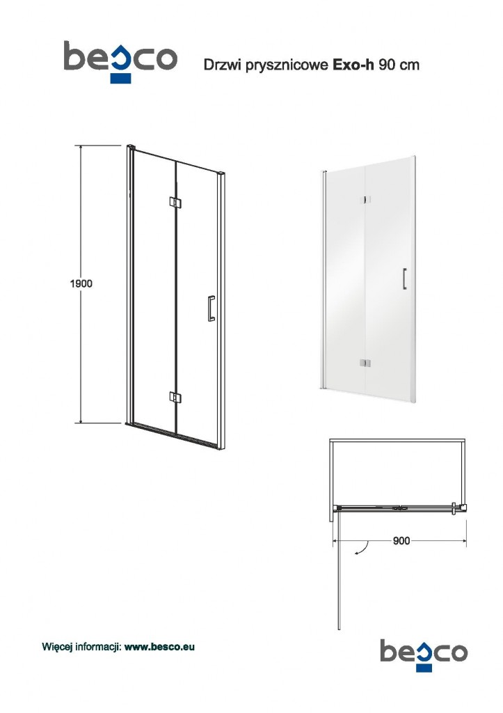 Bezrámové sprchové dvere EXO-H vynikajú vysoko kvalitným spracovaním a spoľahlivou funkčnosťou všetkých súčastí a materiálov. Dvere sú dodávané v troch rozmeroch.