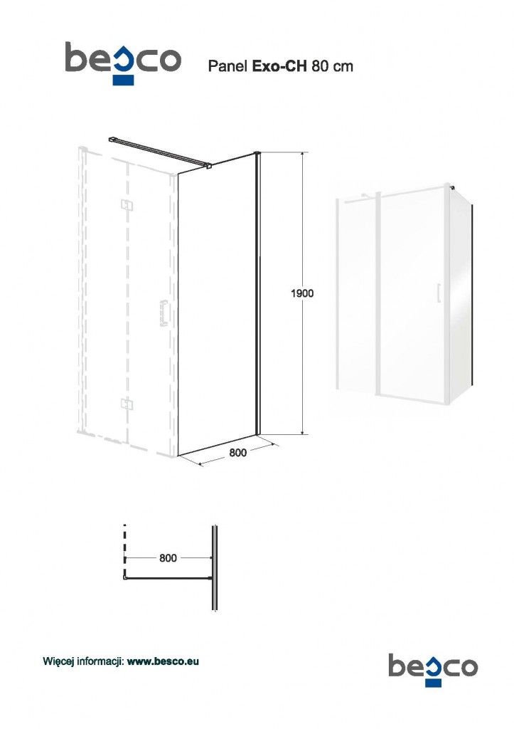 Bezrámové elegantné sprchové dvere EXO-H s možnosťou otvárania dverí do priestoru kúpeľne. Sprchové dvere EXO-H sú vyrobené z tvrdeného bezpečnostného skla s hrúbkou 6 mm , s povrchovou úpravou. Táto úprava uľahčuje čistenie a minimalizuje ukladanie vodného kameňa. Dvere je možné doplniť bočným panelom , vďaka čomu je možné ľahko vytvoriť sprchovací kút pre Vašu kúpeľňu.