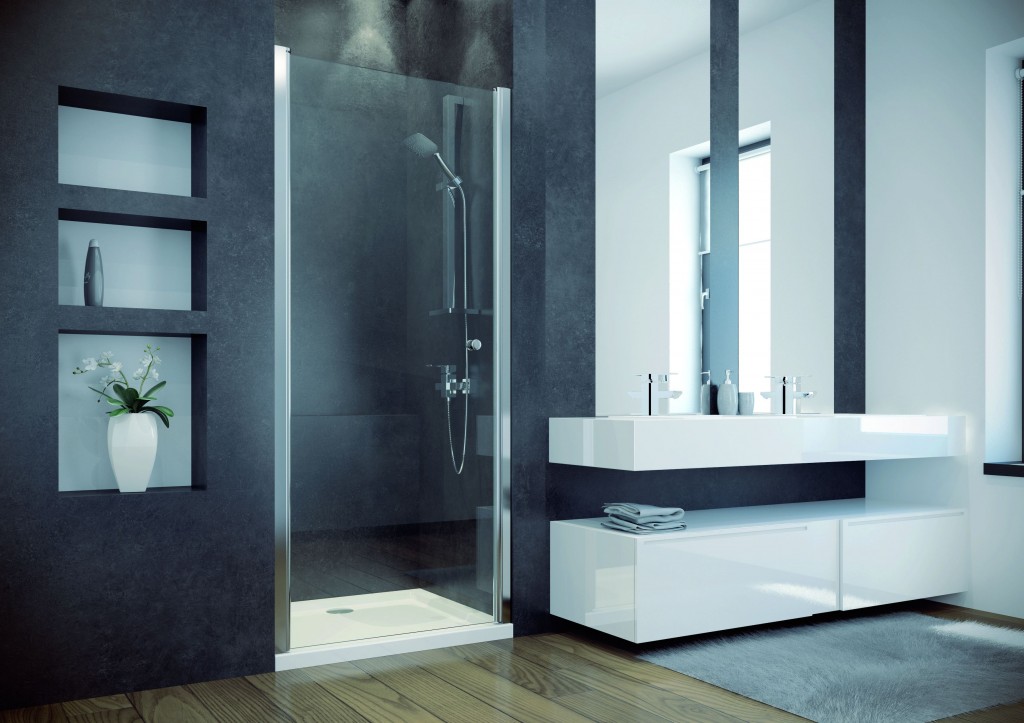 Bezrámové elegantné sprchové dvere SINCO s možnosťou otvárania dverí do priestoru kúpeľne. Sprchové dvere