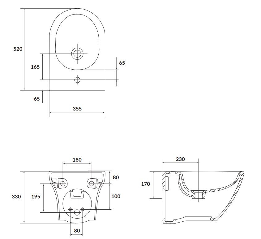 Závesný bidet LARGA s otvorom pre batériu a prepadom.