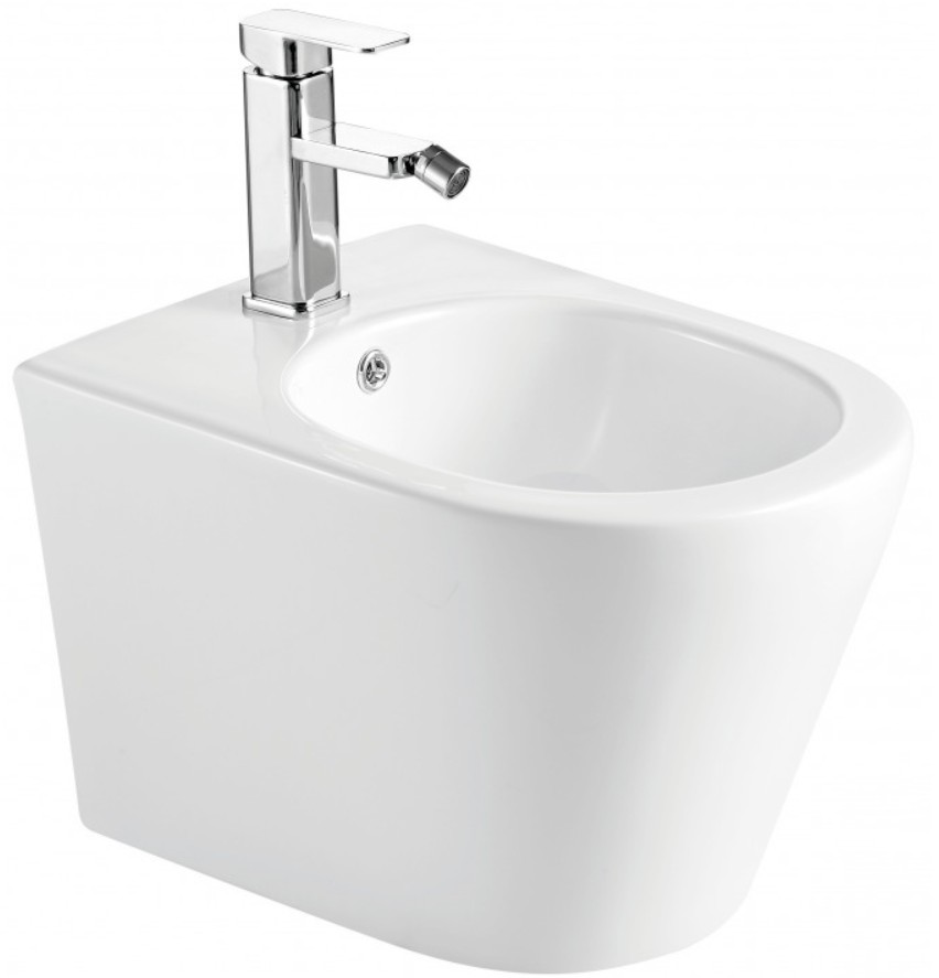 Závesný keramický bidet so skrytým uchytením série RICO má otvor pre stojančekovú bidetovú batériu a má bezpečný prepad.