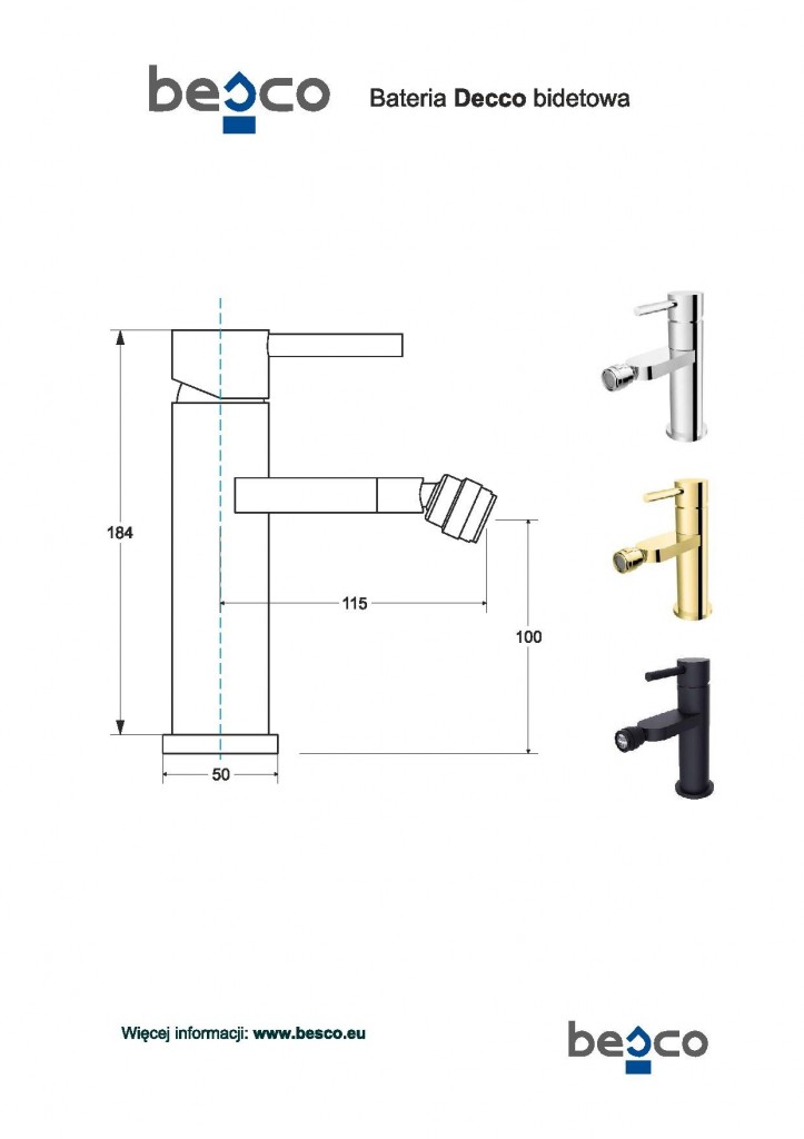 Bidetová batéria DECCO v zlatej brúsenej farbe, k lasickému dizajnu oblých liniek v modernom poňatí sa skvele hodí do každej kúpeľne. Ergonomicky navrhnuté pre maximálny komfort každodenného používania. Dodávame v šiestich farbách a to lesklý chróm , čierna matná, grafitová alebo zlatá, zlatá lesklá a zlatá brúsená.