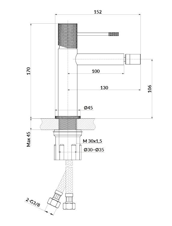 - Flexibilná pripojovacia hadica Eco EPDM, dĺžka 60 cm s priemerom G 3/8 palca, Certifikácia WRAS.