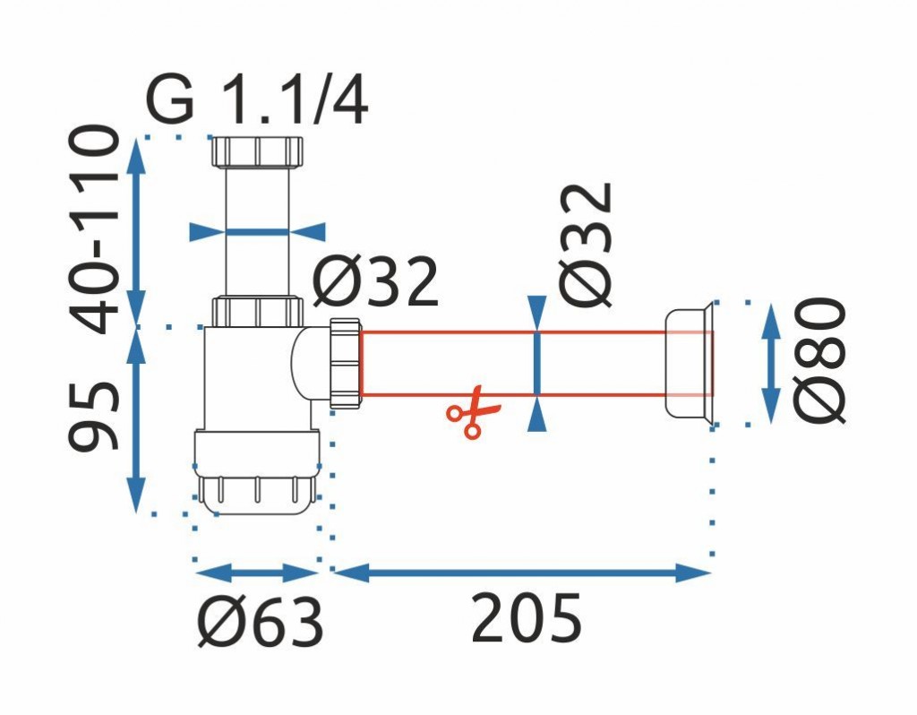 Fľaškový, plastový sifón pre umývadlá . Sifón je vhodný pre všetky umývadlá so štandardným odtokovým otvorom 45 mm. Súprava obsahuje všetky matice a tesnenia potrebné na montáž a použitie.