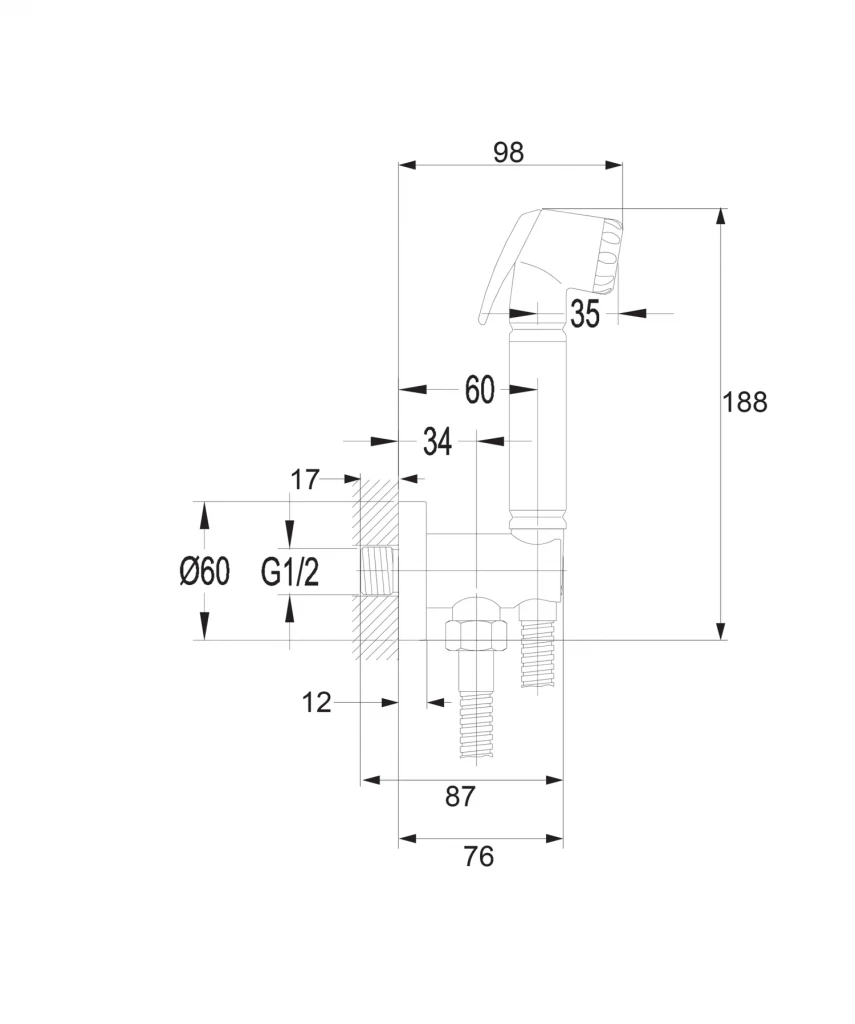 - mosadzné uhlové pripojenie ( 8873CR ), s držiakom na ručnú sprchu. r ozmer rozety: ø6 cm, vzdialenosť od steny: 7 cm