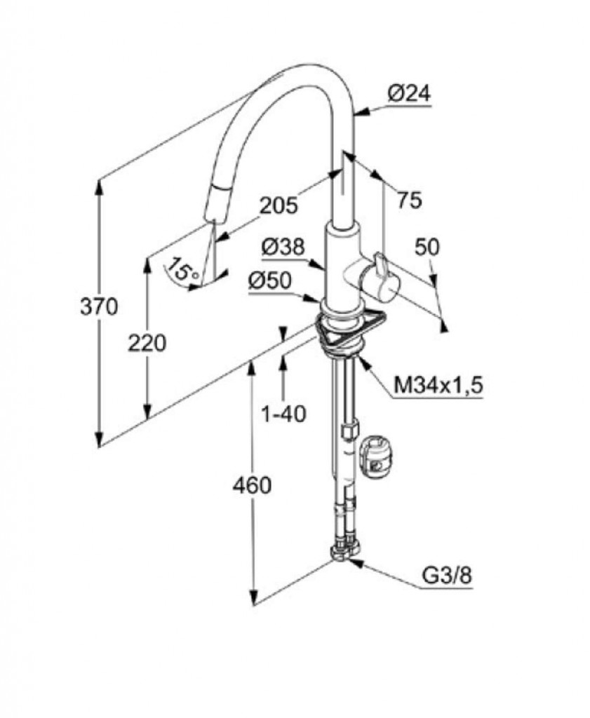- flexibilné prípojky G 3/8