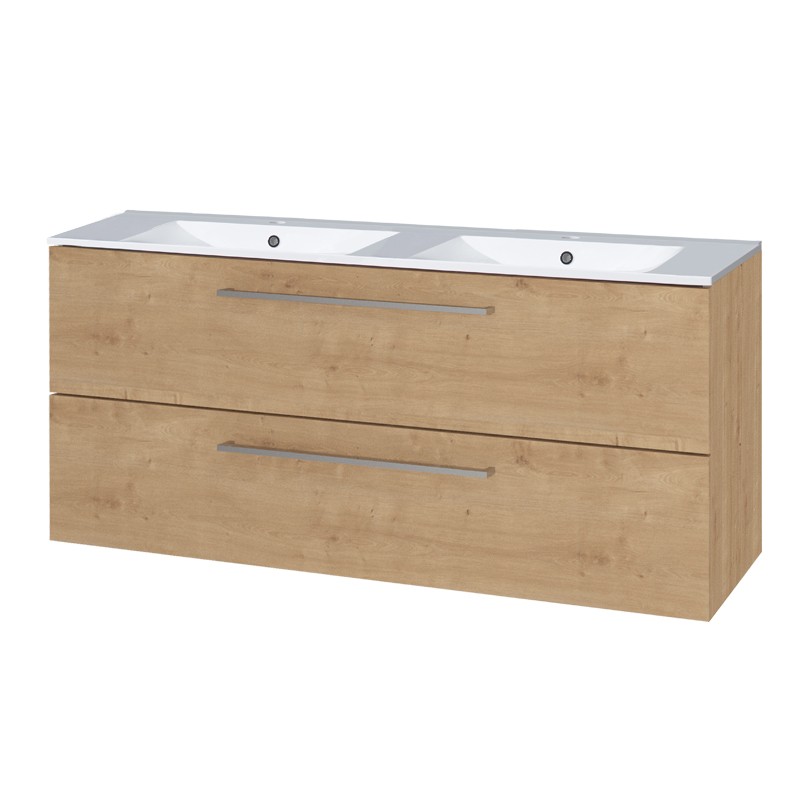 Jednoduchosť, efektívnosť, elegancia. To sú hlavné spoločné menovatele kúpeľňového nábytku Bino, ktorý ozdobí každú kúpeľňu. Vďaka kombinácii inovácií a spoľahlivého prístupu, potom vzniká kvalitný a zároveň veľmi moderný nábytok. Farebné kombinácie biely lesk, dub Arlington a dub Sand Barbera zaisťujú, že bude nábytok ladiť do každého typu kúpeľne. Užívateľsky veľmi praktické sú potom dve plnovýsuvné zásuvky so samozatváracími pojazdmi a tlmením Strong. Skrinka sa dodáva v zloženom stave.