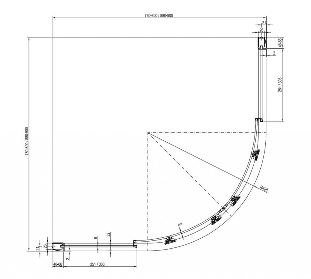 - rozmery: 880-900 x 880-900 mm, výška: 1900 mm