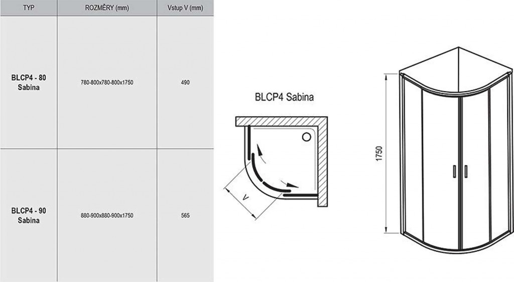 Štvrťkruhový sprchovací kút BLCP4-90 Sabina, s posuvnými dverami