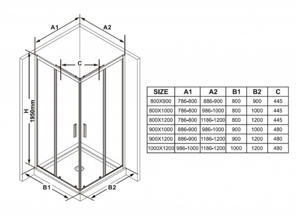 Na vytvorenie kompletného rohového sprchovacieho kúta je potrebné objednať 2 kusy posuvných dverí typu BLSRV2K. Kombináciou rôznych rozmerov oboch dielov získate štvorcový alebo obdĺžnikový variant sprchovacieho kúta.