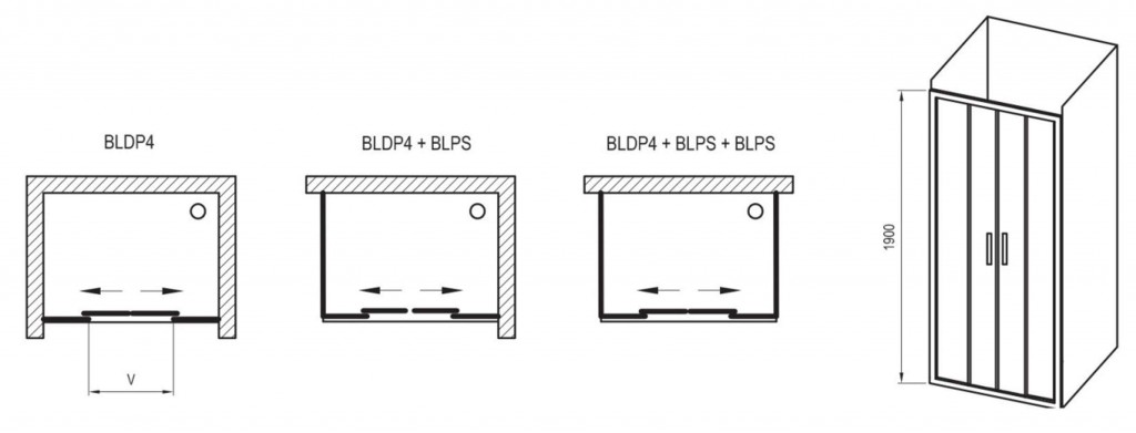 Sprchové dvere BLDP4-130, posuvné štvordielne