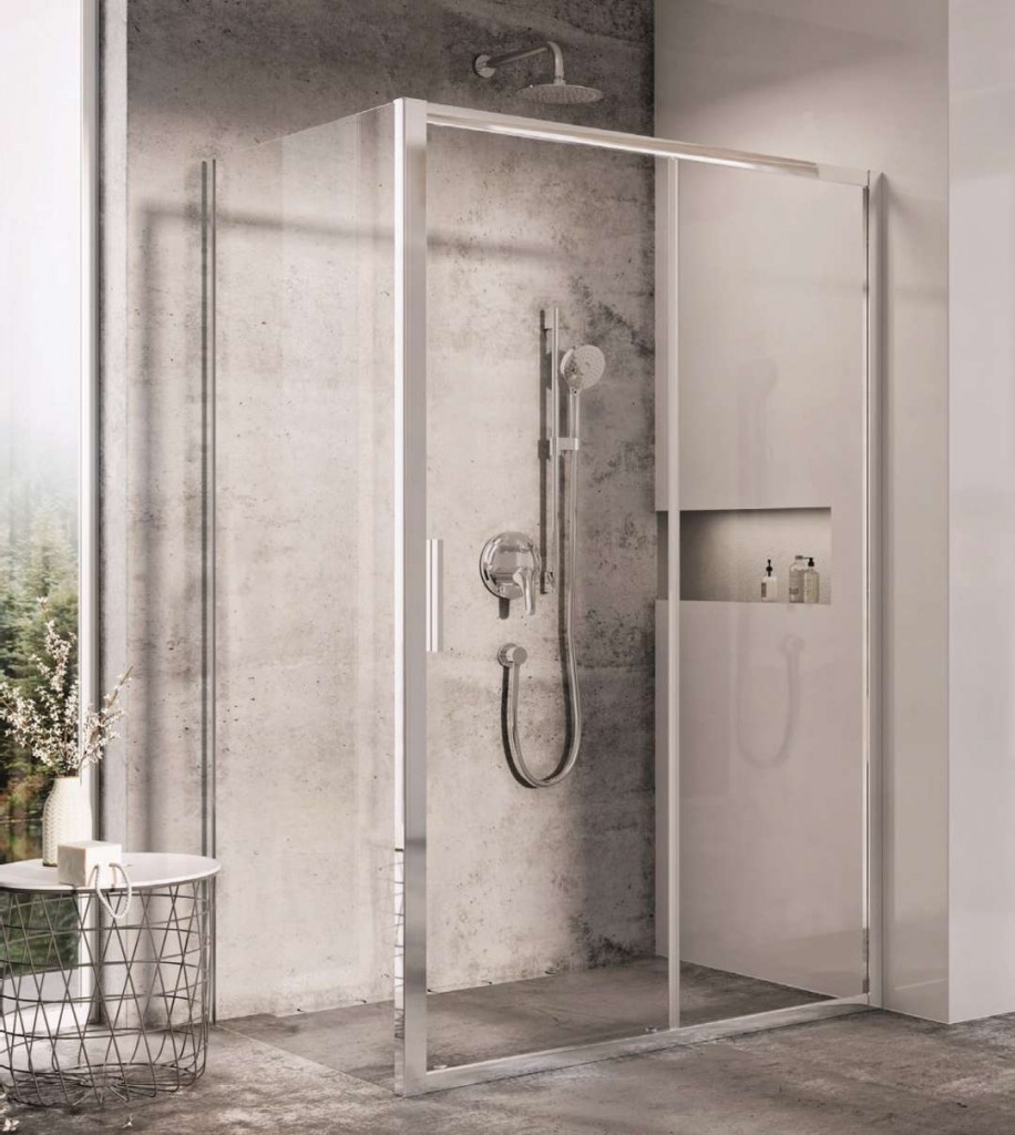 - inštalácie: 1 pevný a 1 posuvný diel, montáž do obloženého rohu / niky na sprchovú vaničku alebo priamo na podlahu so zabudovaným odtokovým žľabom či podlahovou vpustí