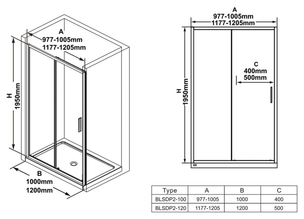 - šírka: 1200 mm, výška: 1950 mm