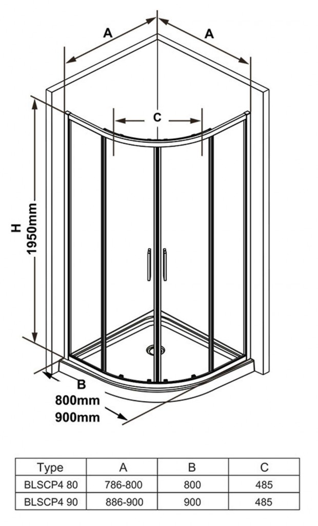- rozmery: 800 x 800 mm, výška: 1950 mm