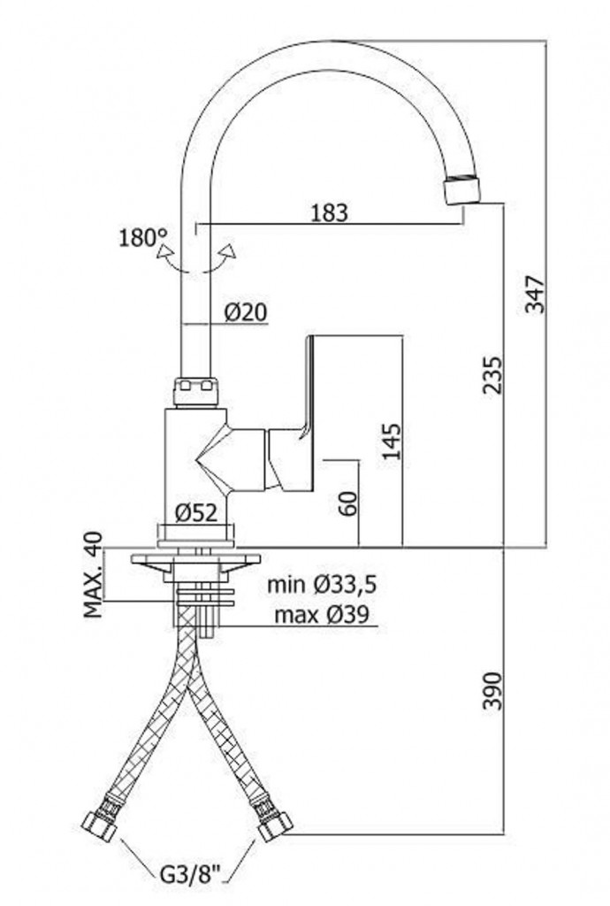 Kuchynská drezová stojanková páková batéria s otočným ramienkom