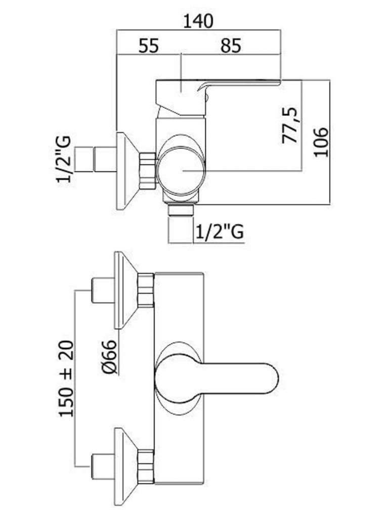 Sprchová nástenná páková batéria bez sprchového príslušenstva