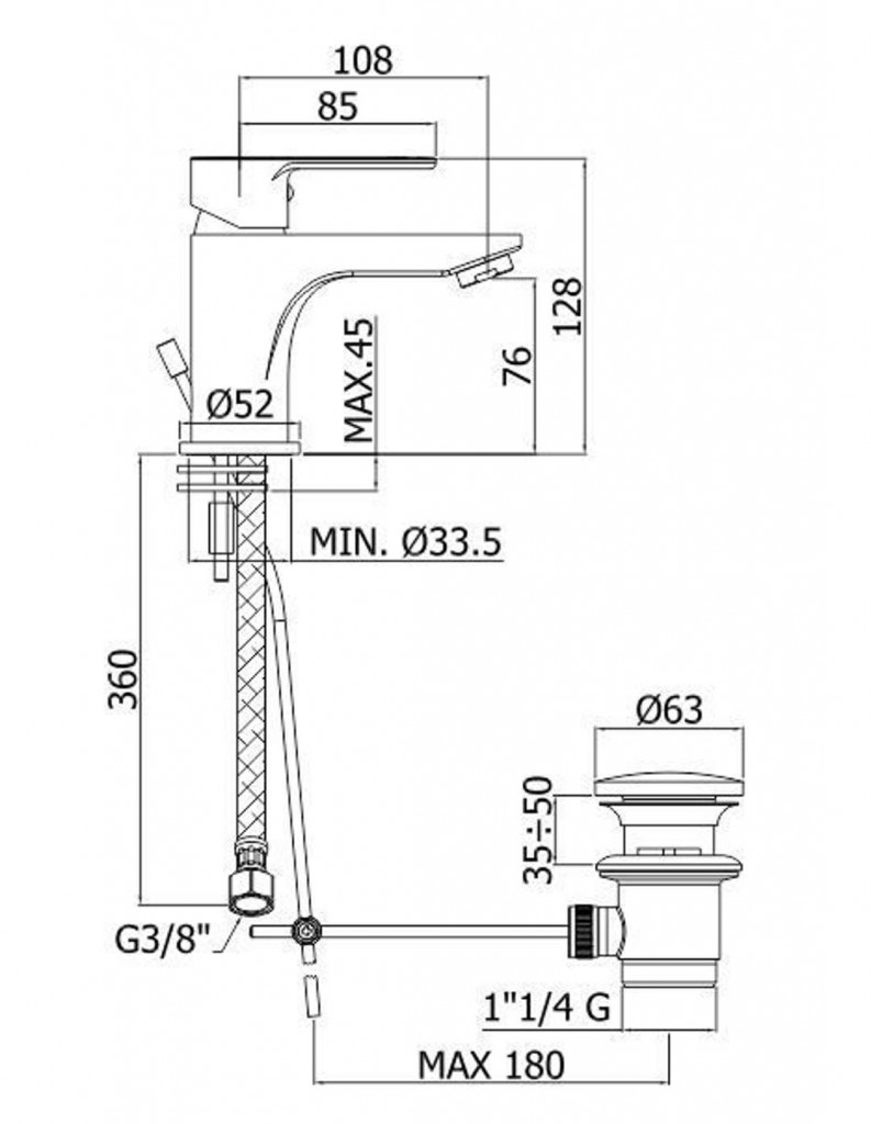 - dĺžka výtoku 108 mm, komfortná zóna 76 mm