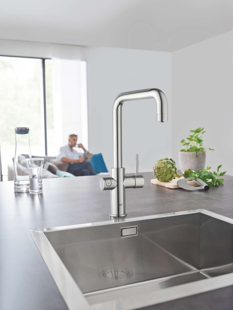 Batérie GROHE Blue Home Duo poskytuje ako klasickú, tak filtrovanú vodu