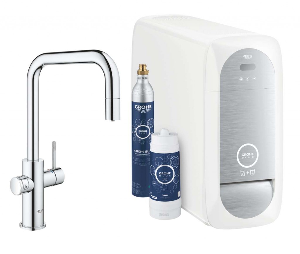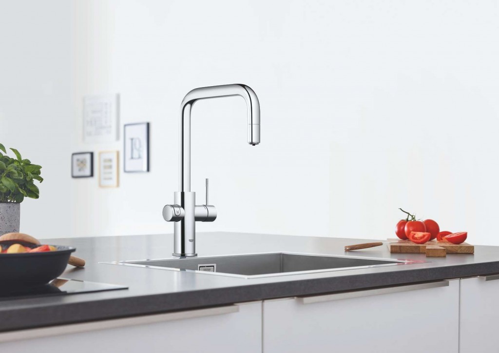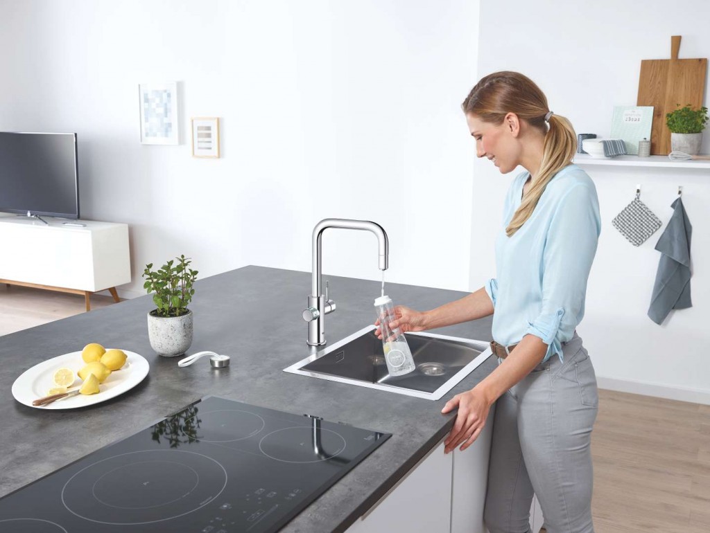 Batérie GROHE Blue Home Duo poskytuje ako klasickú, tak filtrovanú vodu