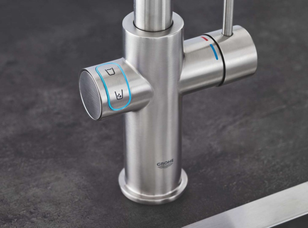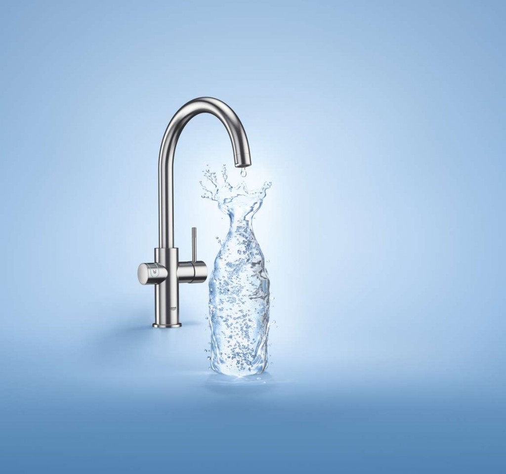 Batérie GROHE Blue Home Duo poskytuje ako klasickú, tak filtrovanú vodu