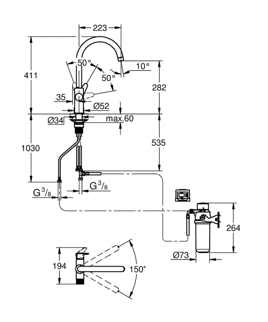 - filter s aktívnym uhlím GROHE Blue pre oblasť s mäkkou vodou pod 9° dKH