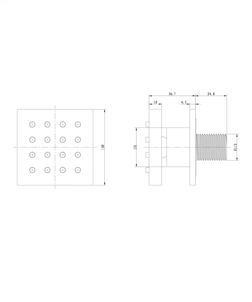 Nástenná bočná tryska je vyrobená z kvalitnej mosadze triedy "A" a jedná sa o príslušenstvo s ktorým je možné kombinovať podomietkové batérie. Vďaka systému FLEXI JET si môžete nastaviť uhol prúdu vody vytekajúcich z trysiek. Silikónové výstupky EASY CLEAN umožňujú vyčistiť výrobok od usadenín vodného kameňa jednoduchým a rýchlym utretím rúk.