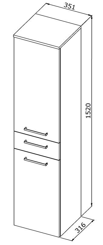 - Rino - B, vysoká bočná skrinka, 1x dvierka, 1x šuplík, 1x kôš, ľavé prevedenie