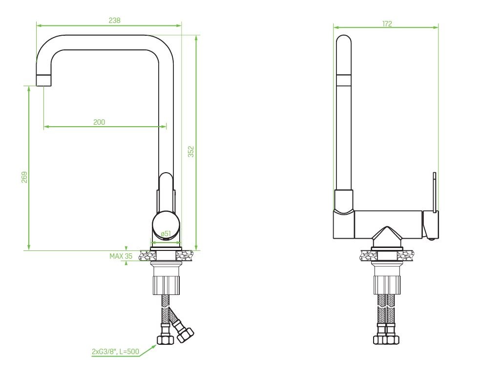 Dostupné sú v troch obľúbených tvaroch výtoku – F, U a L – a ich hladký oceľový povrch zaisťuje ľahkú údržbu aj dlhú životnosť. Tieto batérie sú spojením štýlu, funkčnosti a udržateľného prístupu k vode.