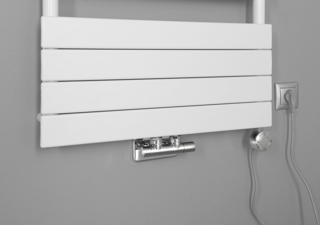 Kúrenie s bočným pripojenímKombinované pripojenie umožňuje ohrievať teleso ako centrálnym systémom vykurovania, tak využiť pre samostatný ohrev elektrickú vykurovaciu tyč mimo vykurovacej sezóny. Vykurovaciu tyč odporúčame s rovnakým alebo podobným výkonom podľa špecifikácie daného vykurovacieho telesa.