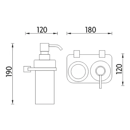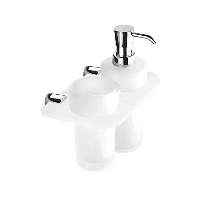 NIMCO Bormo ixi Dvojitý držiak dávkovače a saklenky BR X3-5831W-26 Držiak pohára a dávkovače. Úchyt Plexiglass matovaný povrch.
