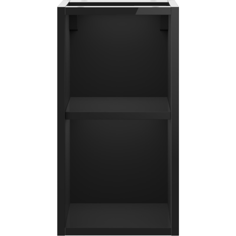 Špecifikácia produktu: Šírka: 25 cm Výška: 47 cm Hĺbka: 44,2 cm Farba: Lesklá čierna Materiál: Lakovaná MDF doska 1 polica Povrch odolný voči UV žiareniu Kombinovateľné so skrinkami radu Orio a Rivel