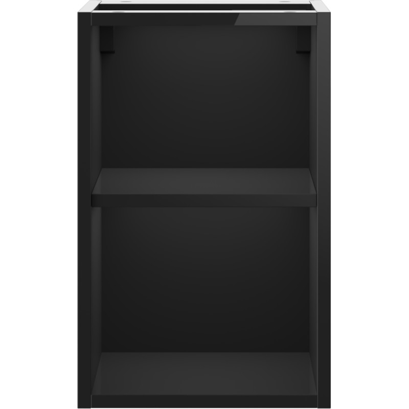 Špecifikácia produktu: Šírka: 30 cm Výška: 47 cm Hĺbka: 44,2 cm Farba: Lesklá čierna Materiál: Lakovaná MDF doska 1 polica Povrch odolný voči UV žiareniu Kombinovateľné so skrinkami radu Orio a Rivel