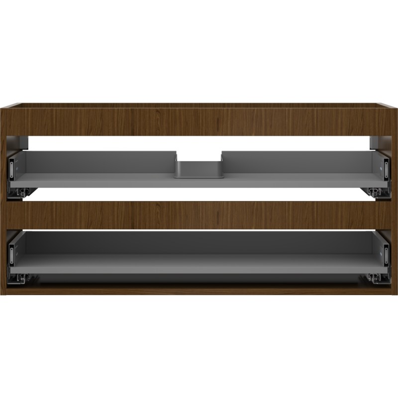 Špecifikácia produktu: Šírka: 100 cm Hĺbka: 44,2 cm Výška: 47 cm Farba: Orech Typ: Závesné Materiál: Kartón + PVC fólia Počet zásuviek: 2 Vodítka s funkciou tlmeného dovierania Plný výsuv pre ľahký prístup k obsahu zásuvky Povrch odolný voči UV žiareniu Kombinovateľný