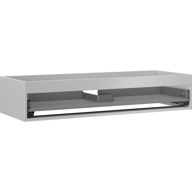 Špecifikácia produktu: Šírka: 120 cm Hĺbka: 44,2 cm Výška: 23,5 cm Farba: Matne šedá Typ: Závesné Materiál: Lakovaná doska Počet zásuviek: 1 Vodítka s funkciou tlmeného dovierania Plný výsuv pre ľahký prístup k obsahu zásuvky Povrch odolný voči UV žiareniu Kombinovateľný